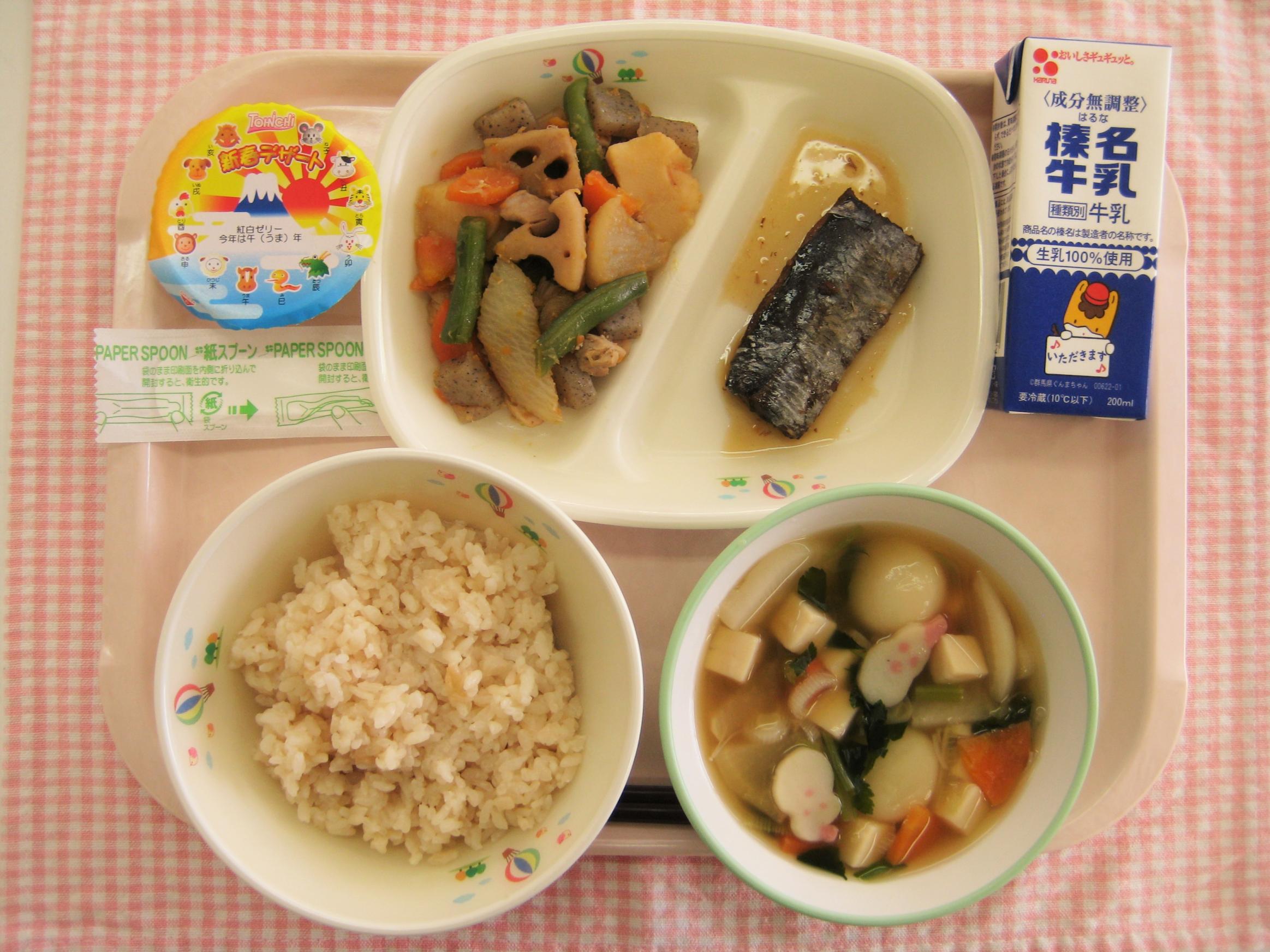 5 冬休み | 6 冬休み | 7 小バンズパン 牛乳 チキンナゲット ペンネのナポリタン風 コンソメスープ | 8 【行事食:人日の節句(7日)・鏡開き(11日)】 さくらごはん 牛乳 にしんの甘露煮 筑前煮 七草雑煮 新春いちごゼリー
