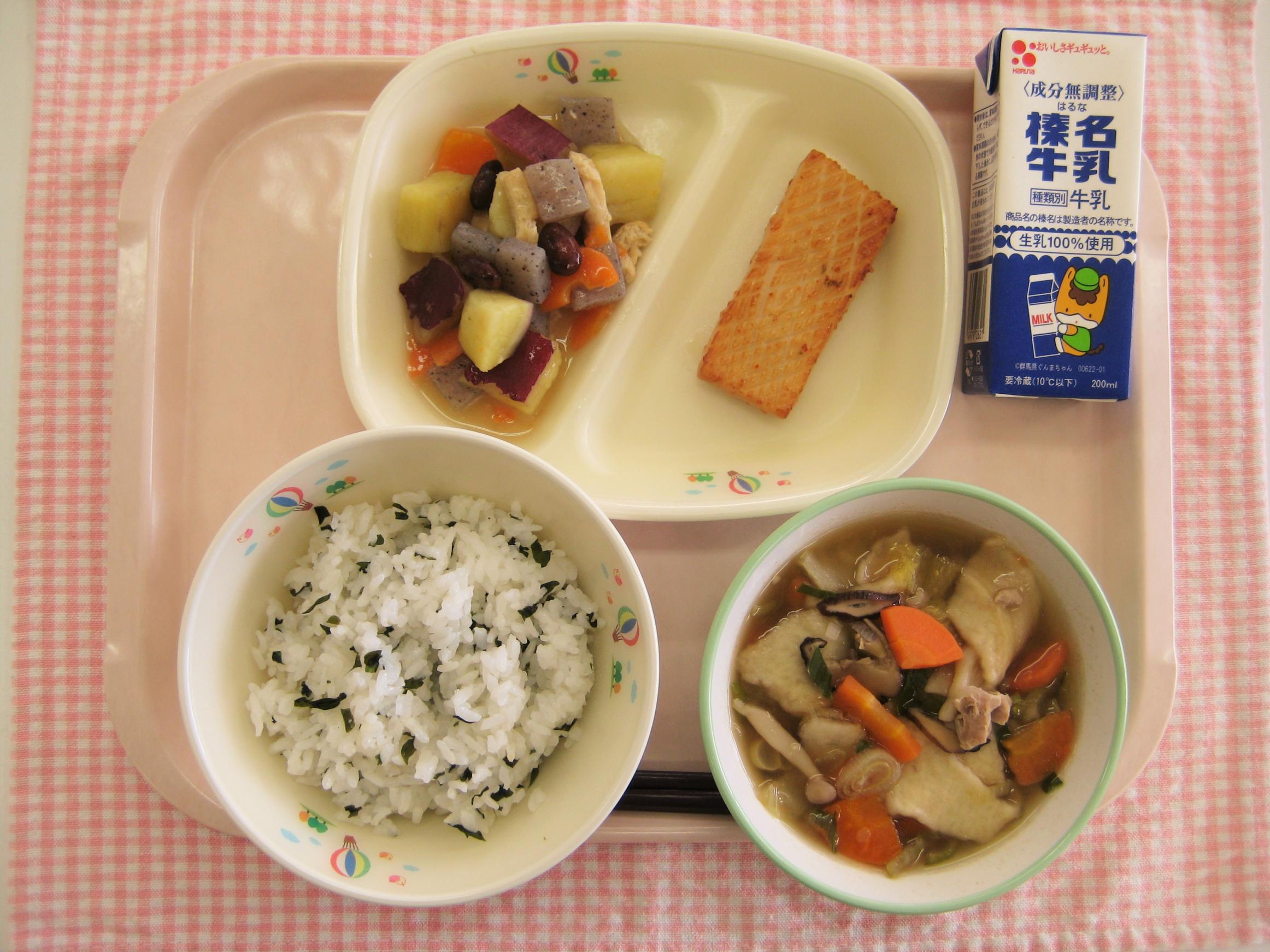 ~初めての給食にちなんだ献立~ ごはん 味付けのり 牛乳 鮭の白醤油焼き たくあんあえ 栄養みそ汁 | 28 全国学校給食週間