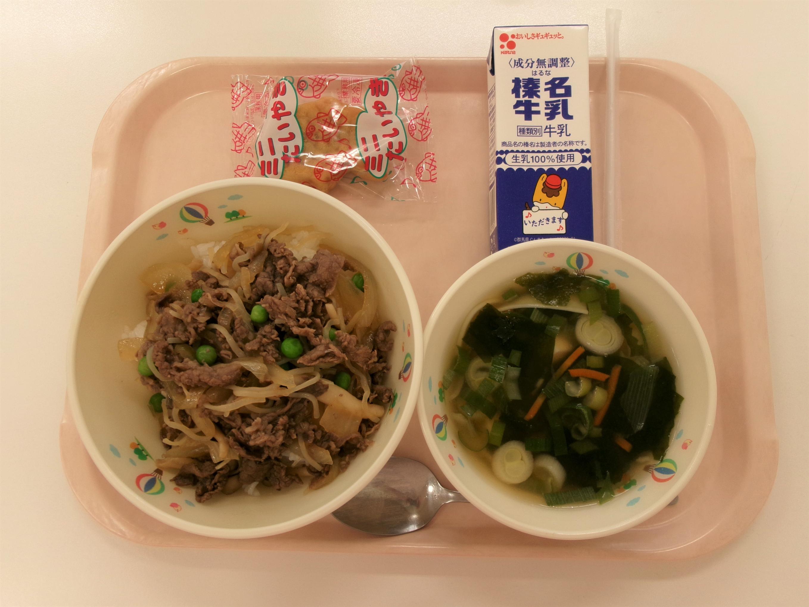 ~高崎市の人気メニュー~ 麦ごはん ジョア(プレーン) ぐんまのシューマイ 高崎丼 春雨スープ |