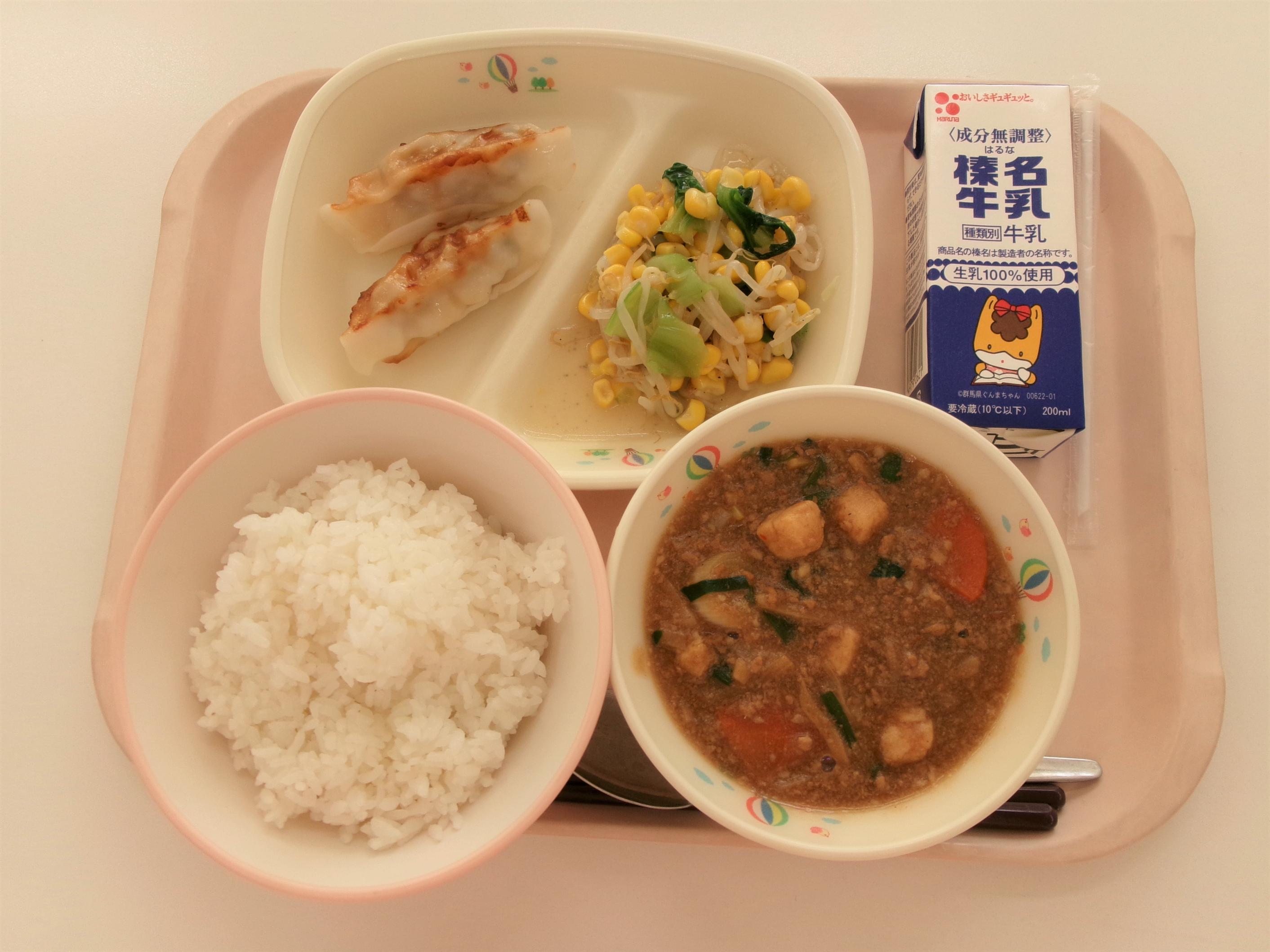 12 成人の日 | 13 ごはん 牛乳 焼きぎょうざ マーボー豆腐 チンゲンサイの塩ナムル