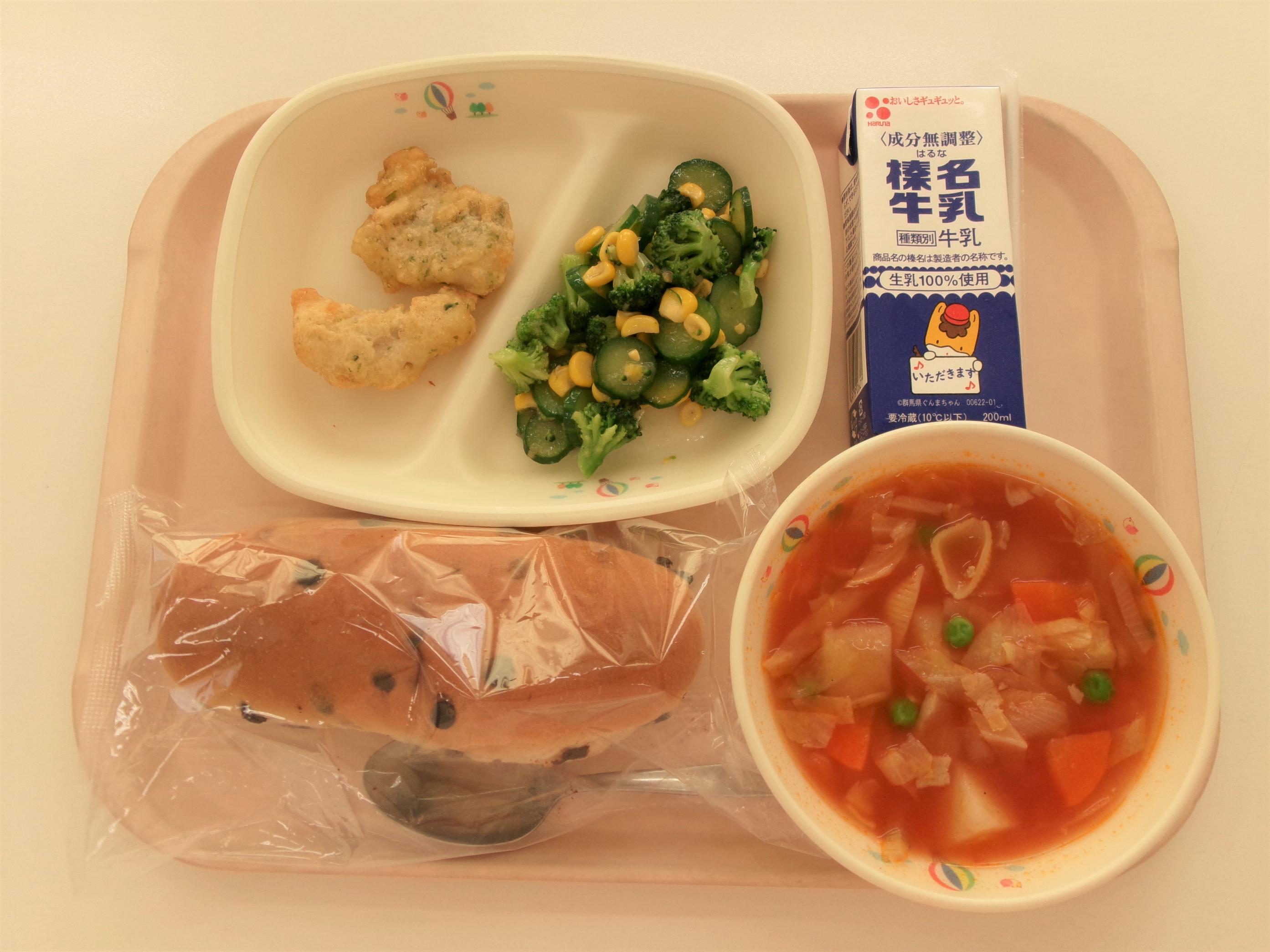 ~吉岡町の人気メニュー~ バンズパン 牛乳 たらのマヨコーン焼き キャベツスープ カラフルサラダ | 30