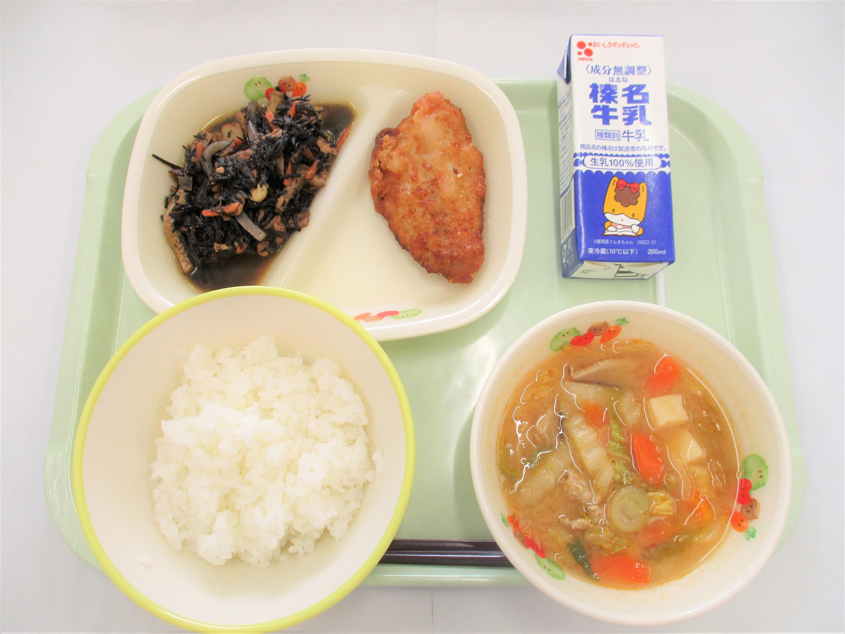 わかめごはん 牛乳 鶏肉のから揚げ ほうれん草のごま和え もやしと油あげのみそ汁 みかんゼリー |