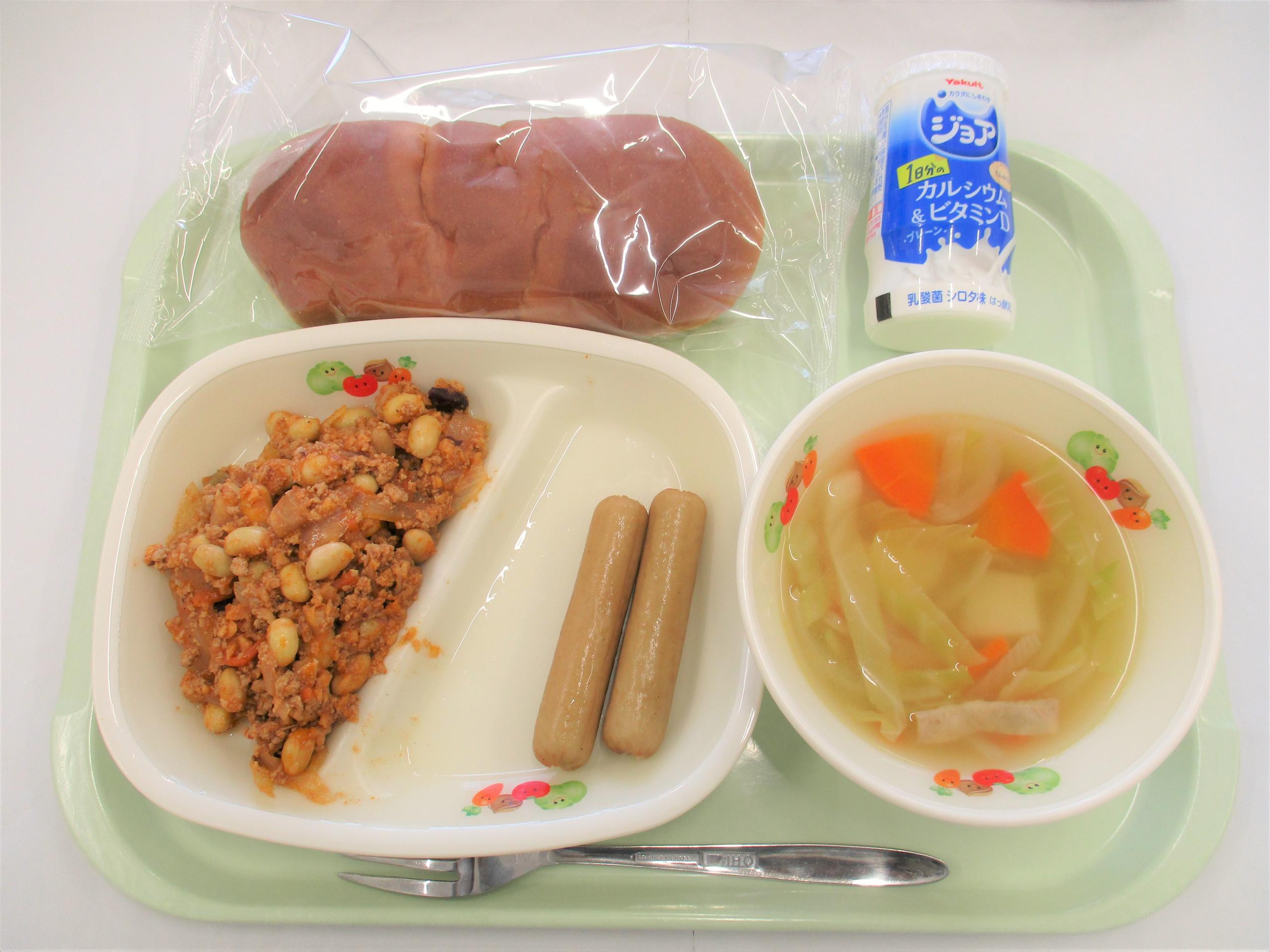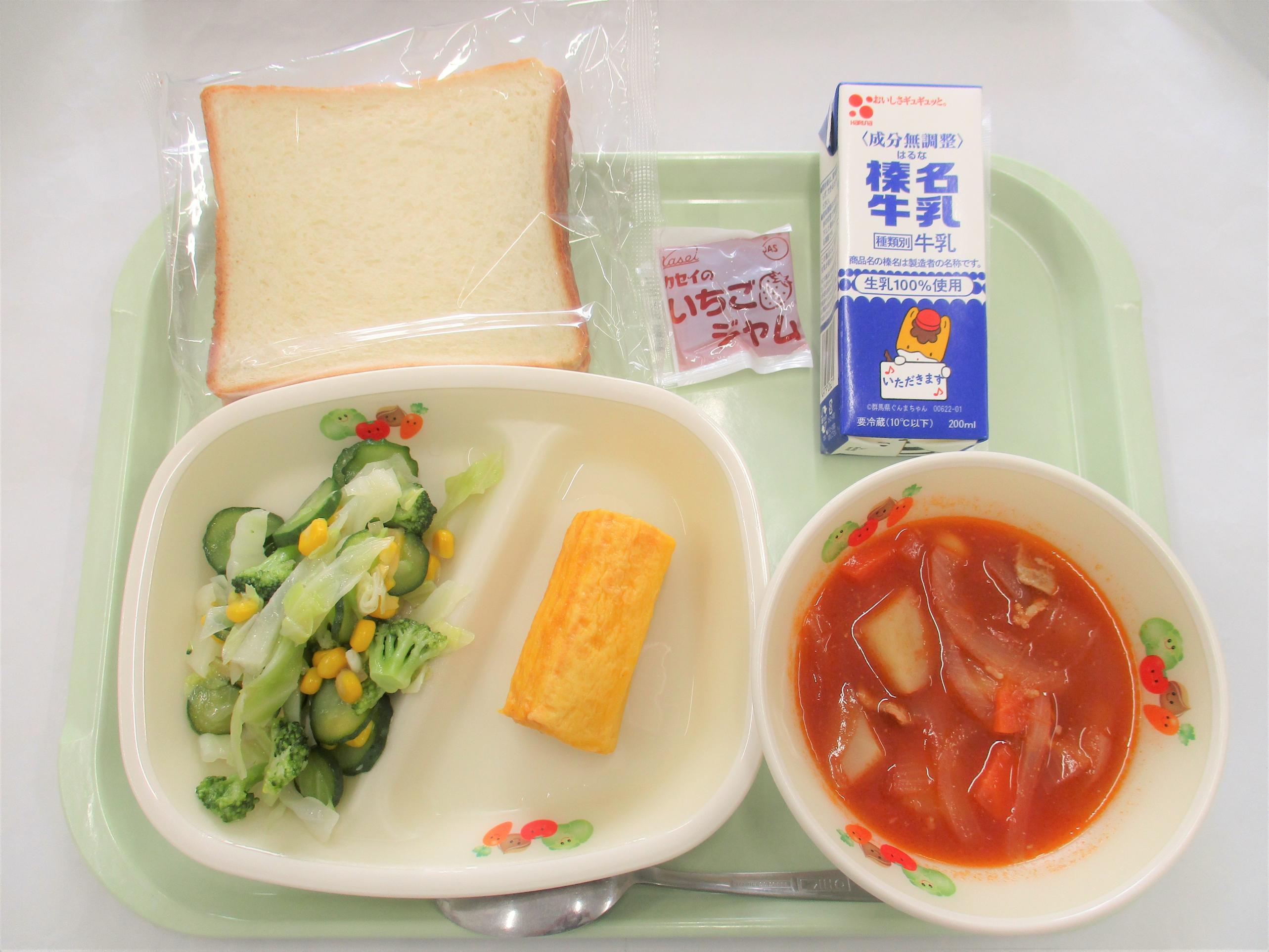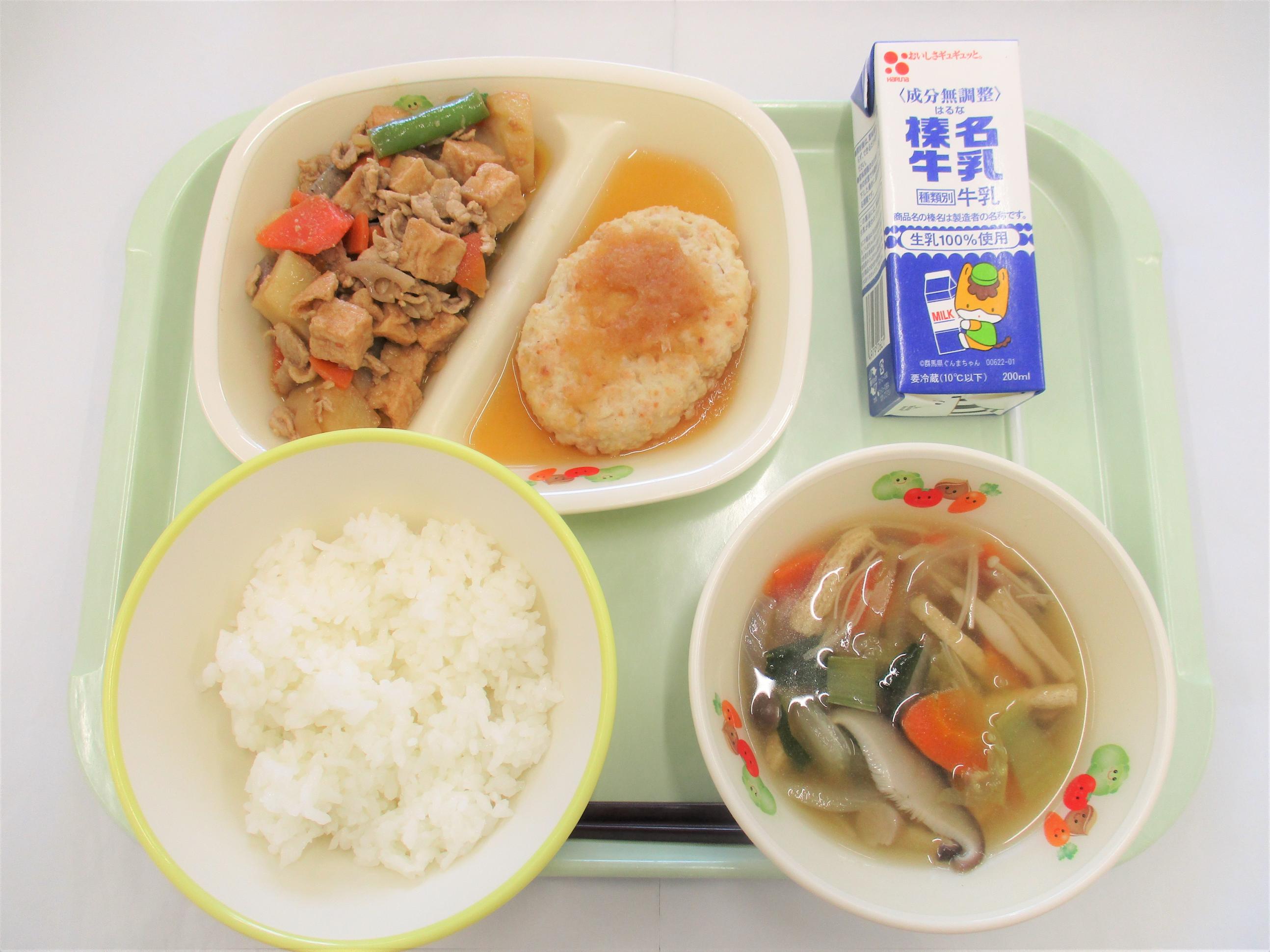 16 ロールパン ジョア(プレーン) ウインナー チリコンカン 野菜スープ | 17 ごはん 牛乳 豆腐ハンバーグおろしソース じゃがいものみそ煮 きのこ汁 | 18 バンズパン 牛乳 FMチキンナゲット ごぼうサラダ 洋風おでん | 19 [小学校卒業お祝い献立] 上州かみなりごはん 牛乳 さわら立田揚げ 切干大根のハリハリ漬け きゃべつとしめじのみそ汁 小:米粉と豆乳のいちごケーキ 中:クリーミーヨーグルト | 20