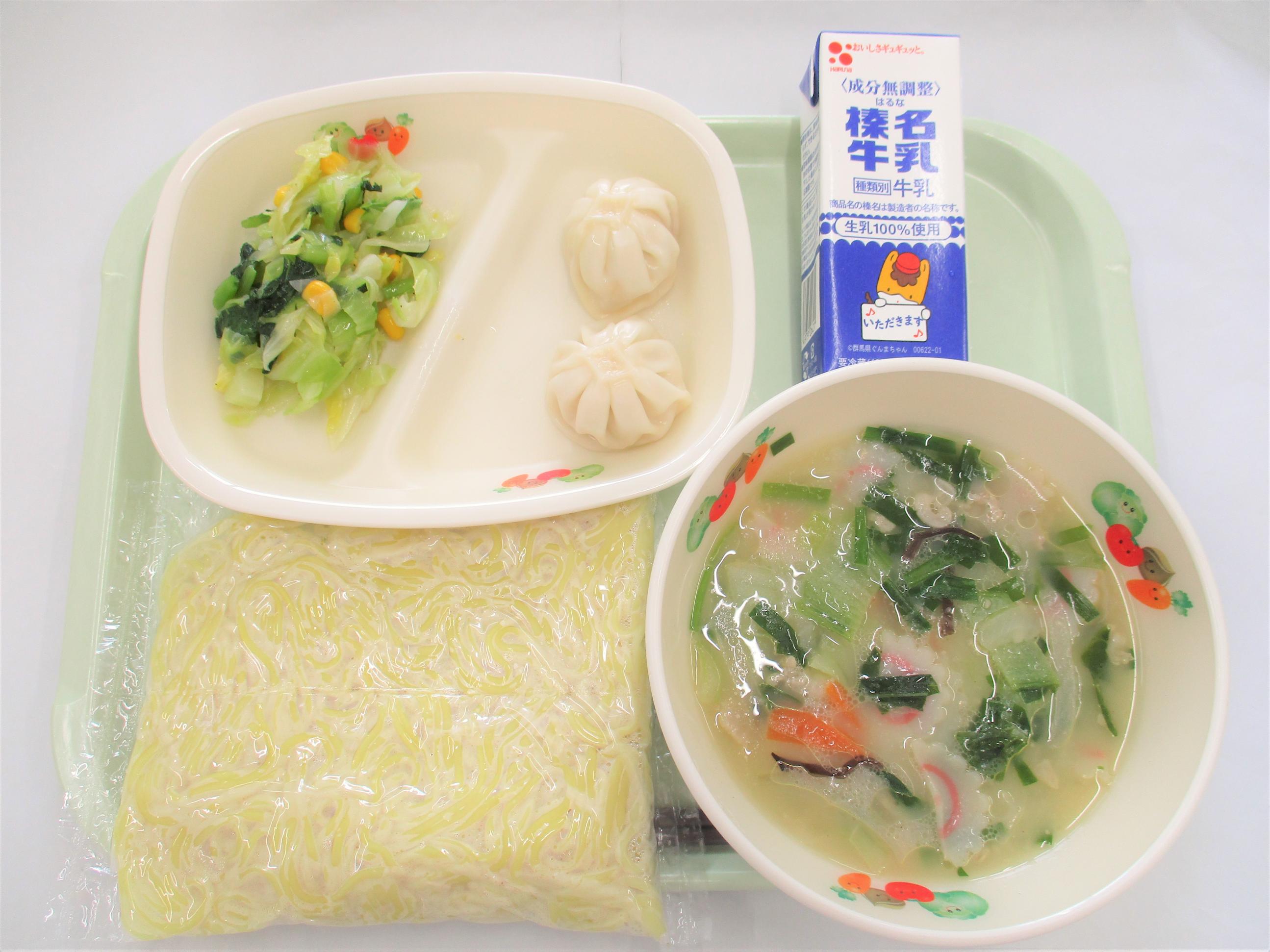 23 とんこつラーメン 牛乳 ショーロンポー 塩中華サラダ