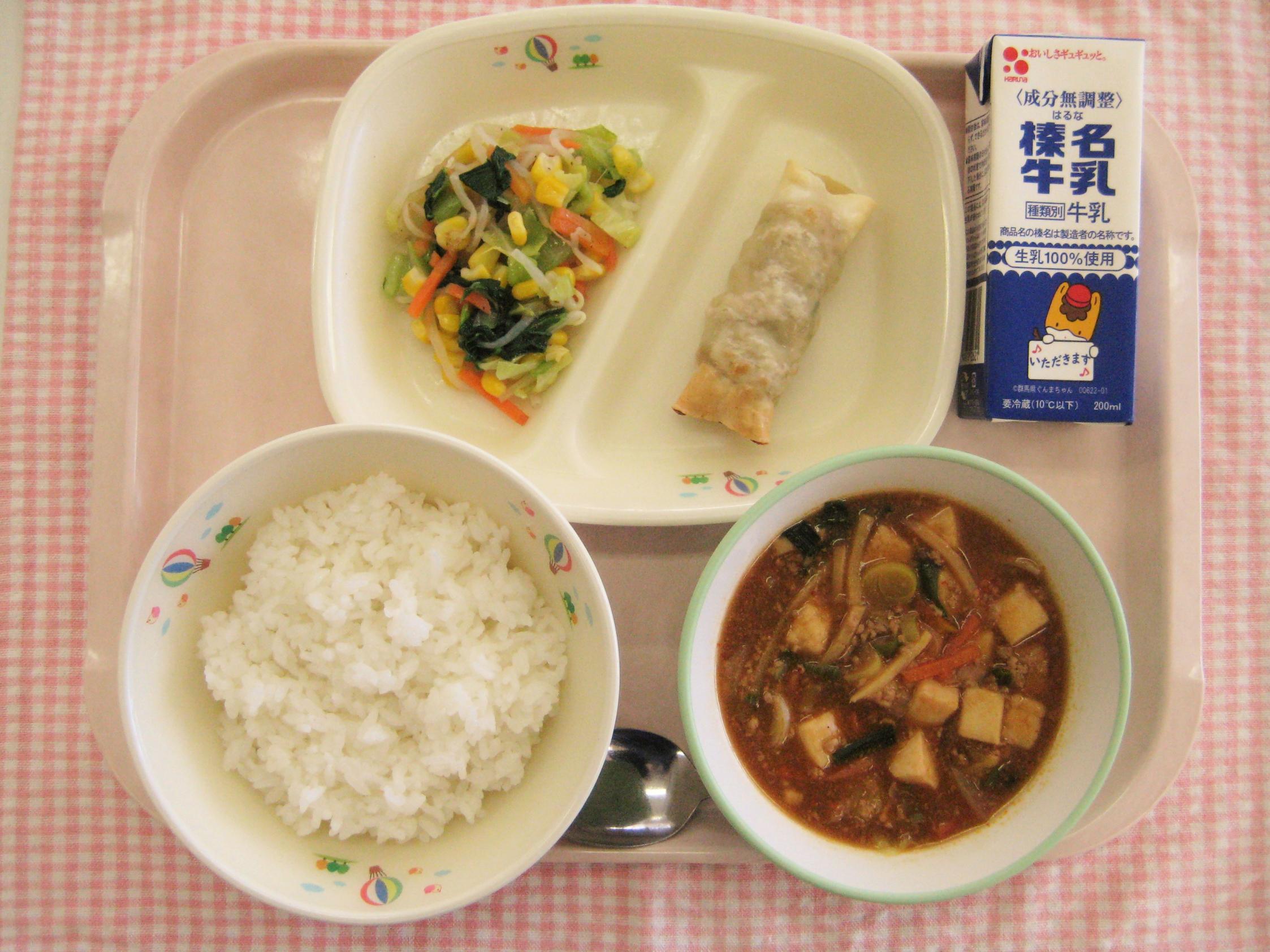 | 17 ごはん 牛乳 たらのみそバター焼き 里芋のそぼろ煮 太平燕 | 18 【渋川北中学校3年生リクエスト献立】 こめっこぱん ジョア(ストロベリー) チキンのチーズ焼き ツナサラダ かぼちゃポタージュ | 19 ごはん 牛乳 棒餃子 青梗菜のうま塩サラダ 麻婆豆腐 | 20