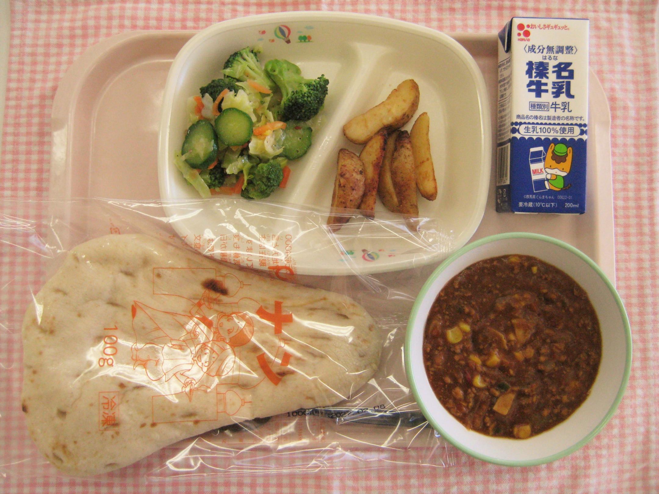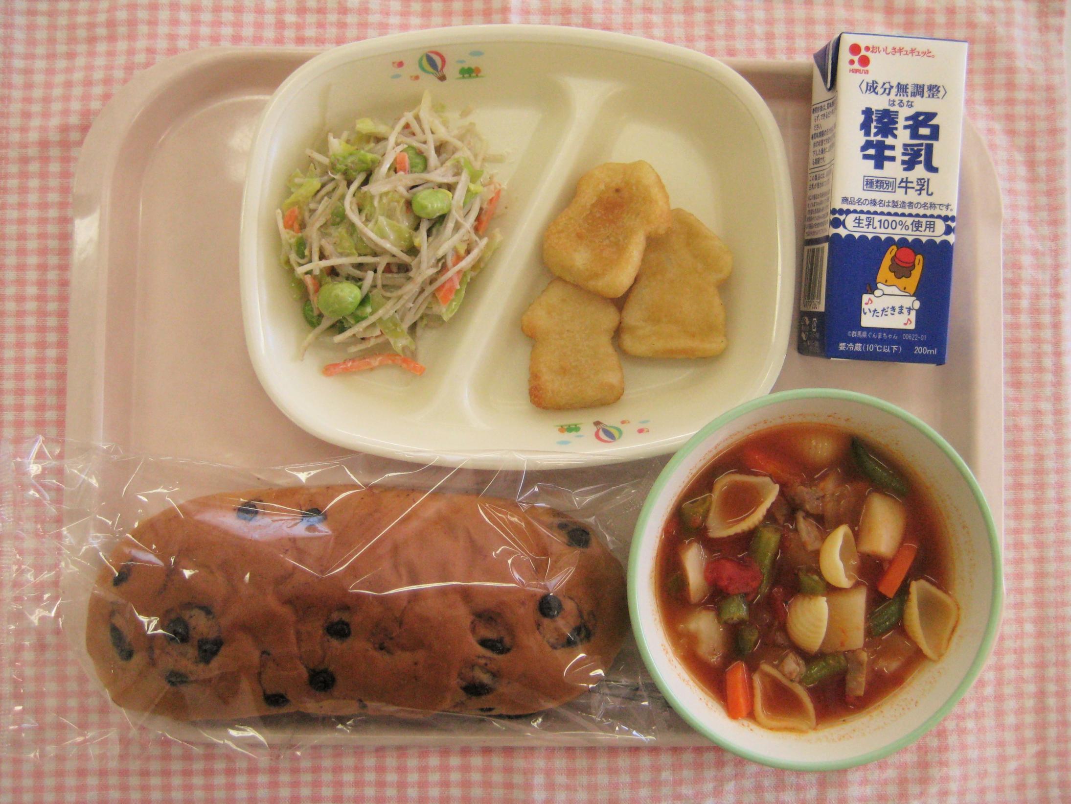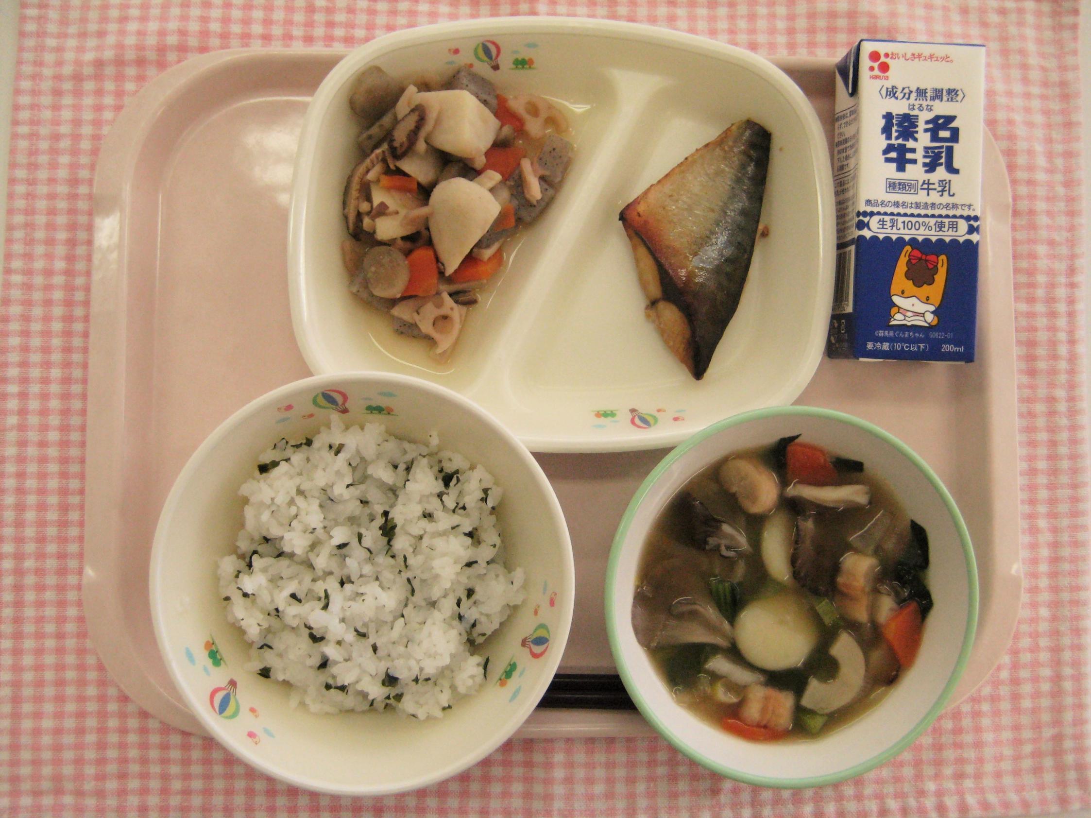 16 パックラーメン 牛乳 ぎょうざ 肉野菜炒め ちゃんぽんラーメンスープ | 17 【郷土料理:宮城県】 わかめごはん 牛乳 さばのカレー風味焼き お煮しめ はっと汁 | 18 背割れこめっこぱん 牛乳 ウインナー ツナサンドの具 クリームシチュー | 19
