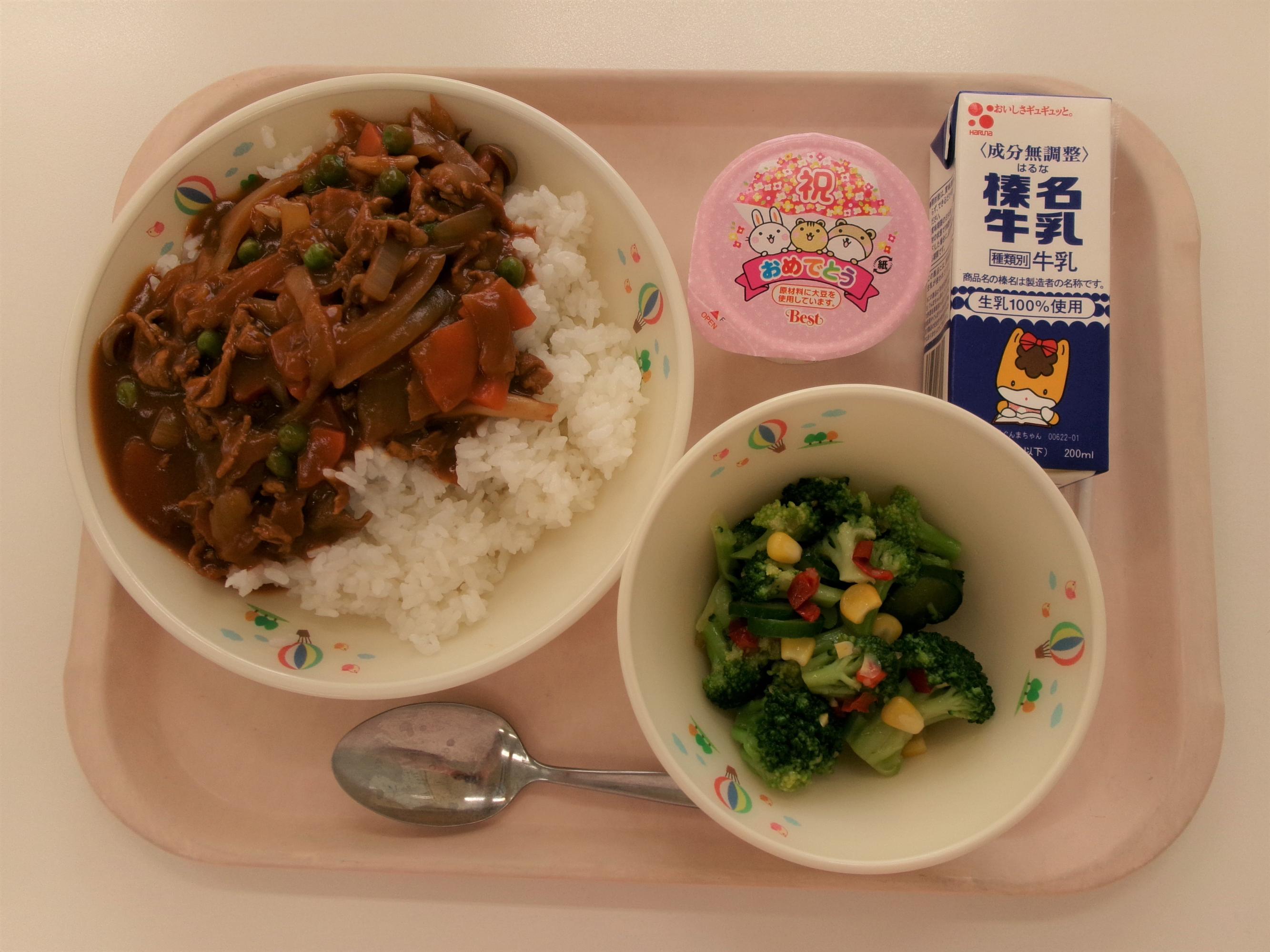 2 ~ひなまつりの行事食~ ごはん 牛乳 花型豆腐ハンバーグ 花かまぼこのすまし汁 キャベツのこんぶあえ ミニ桜餅 | 3 うどん☆パックめん 牛乳 焼き芋 きつねうどん汁 | 4 麦ごはん 牛乳 ポークカレー ヘルシーサラダ ミニレモンゼリー | 5 ~カルシウムアップ献立~ 丸パン横切り ジョアストロベリー ハンバーグトマトソース ABCスープ まめまめサラダ | ~伊香保中学校リクエスト献立~ わかめごはん 牛乳 さばのみそ煮 豚汁 ほうれん草のごまあえ お茶プリン |