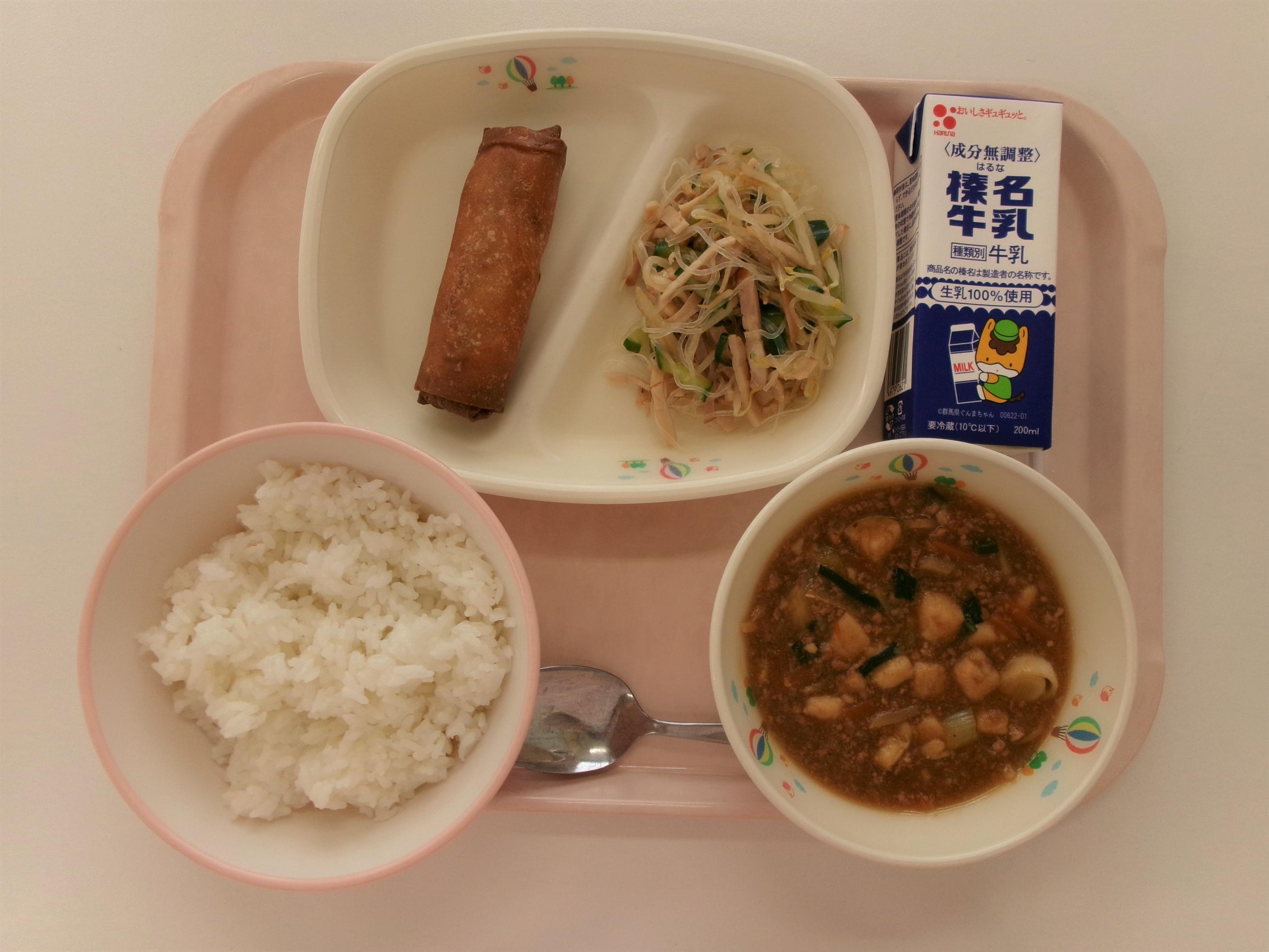 20 ごはん 牛乳 春巻 マーボー豆腐 春雨サラダ