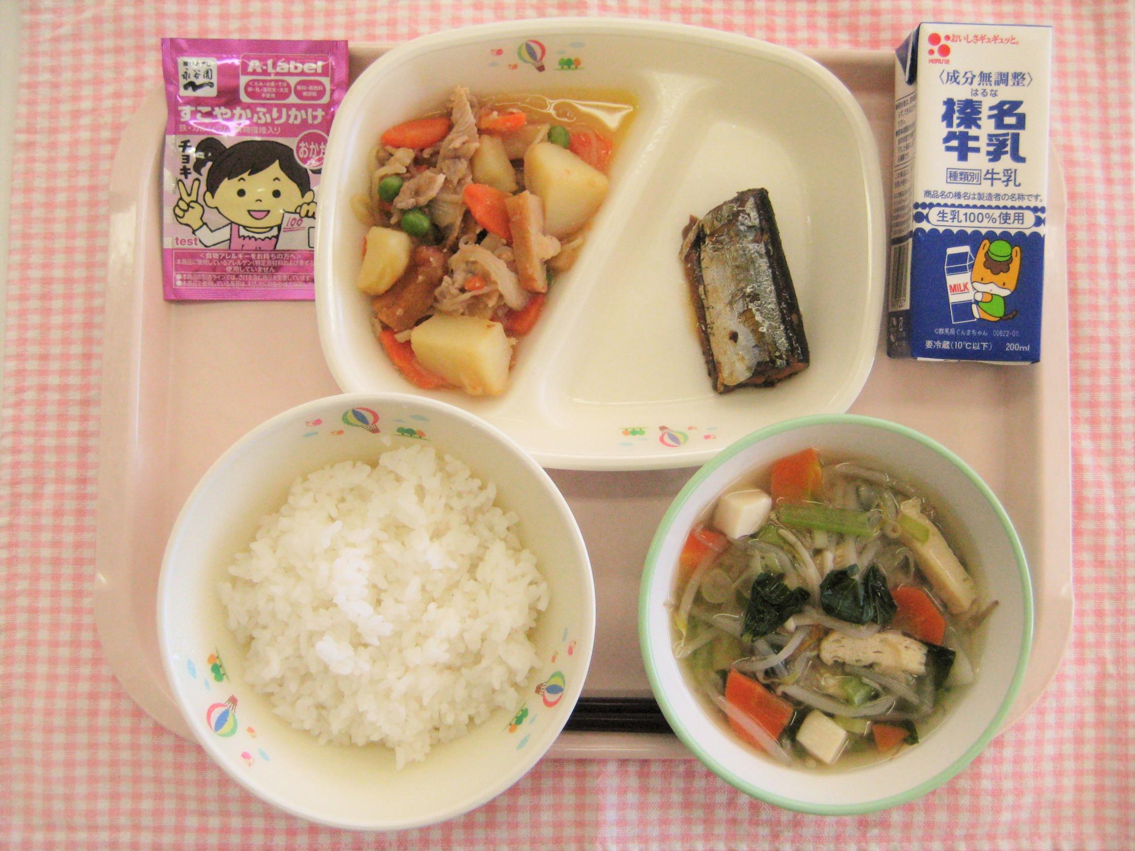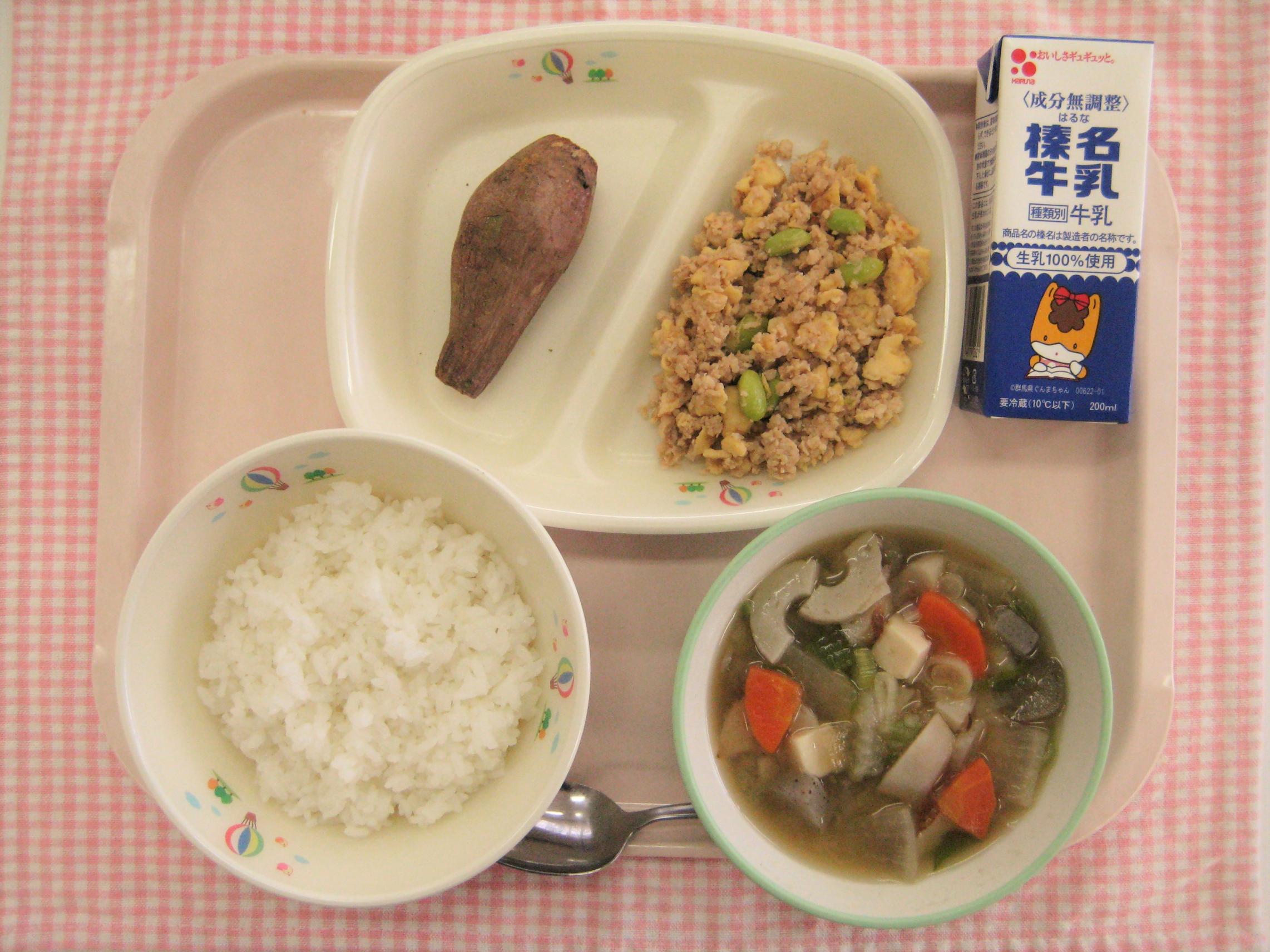 6 ごはん 牛乳 焼き芋 とりたまそぼろ みそけんちん汁