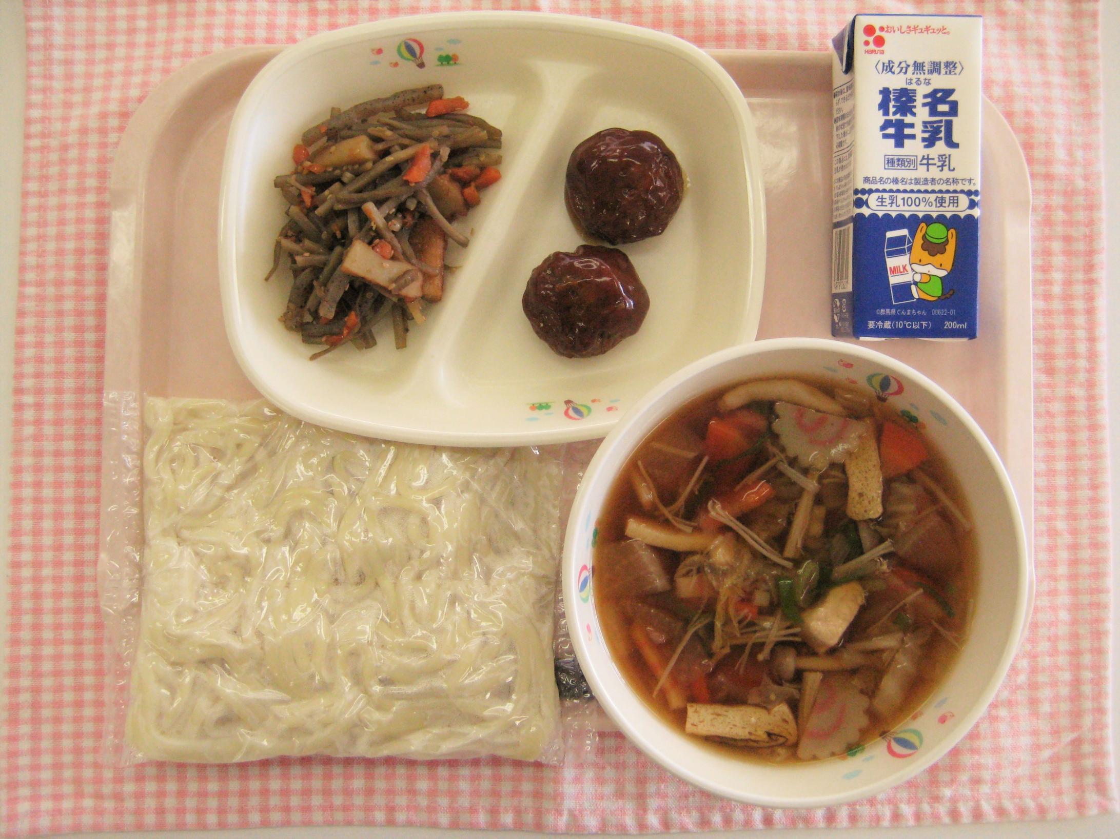 7 パックうどん 牛乳 照り焼きつくね きんぴらごぼう 五目うどんの汁 |