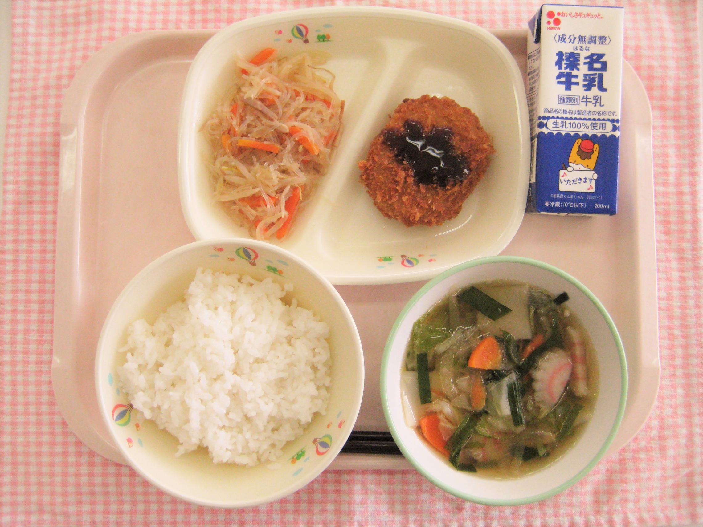11 ごはん 牛乳 県産ニラメンチカツソースかけ 春雨炒め 県産米粉ワンタンスープ |
