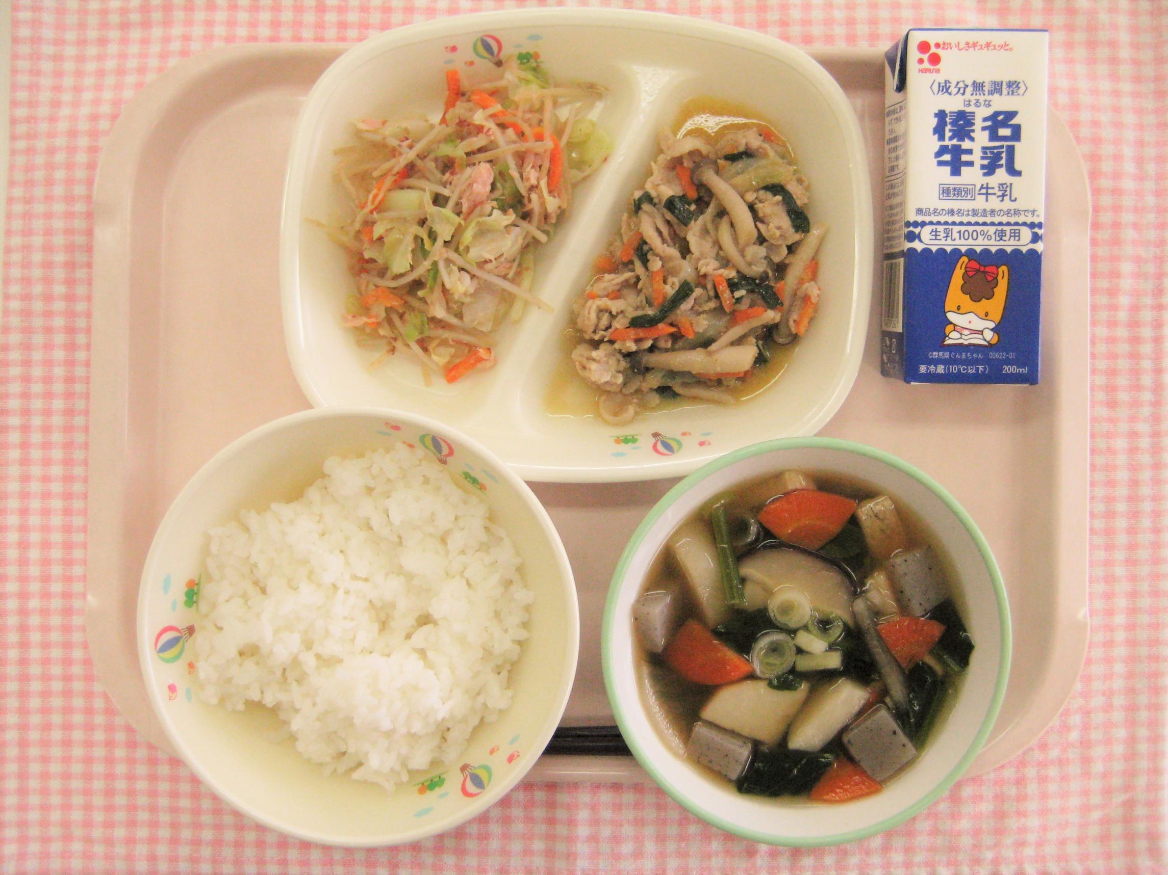 13 ごはん 牛乳 みそだれ焼き肉 和風ツナサラダ のっぺい汁