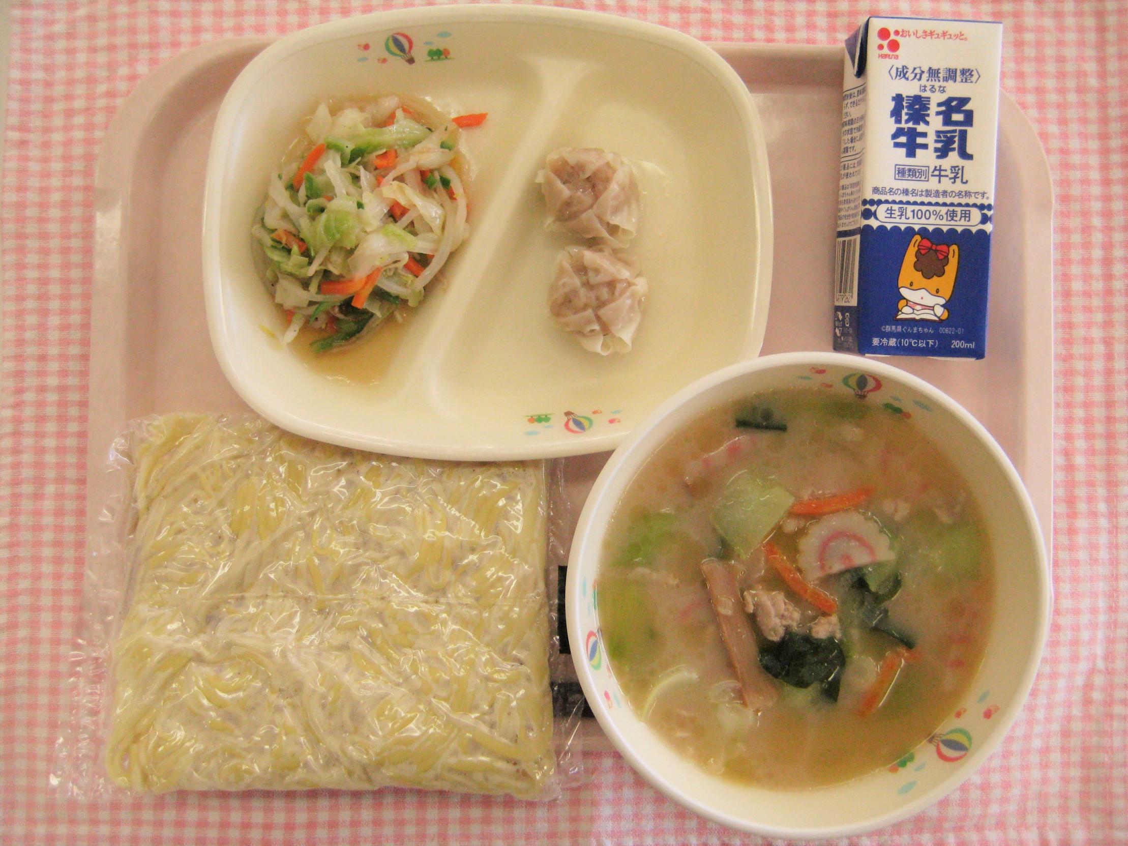 17 パックラーメン 牛乳 しぶせんしゅうまい 中華サラダ 豚骨醤油ラーメンスープ
