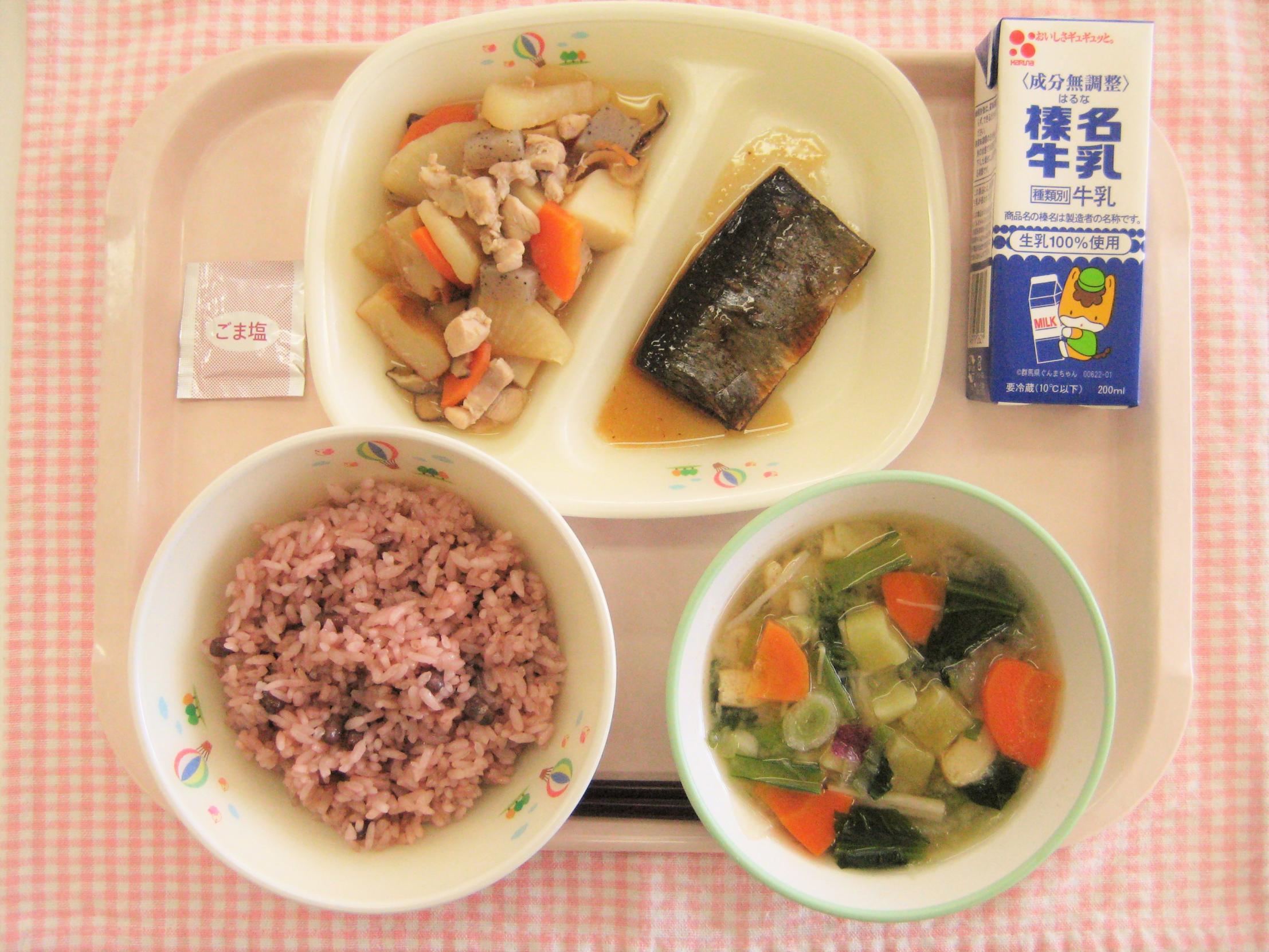 20 ~赤飯の(11/23)・和食の日(11/24)にちなんだ献立~ 赤はん ごま塩 牛乳 にしんの甘露煮 大根と鶏肉の煮物 さつま芋のみそ汁