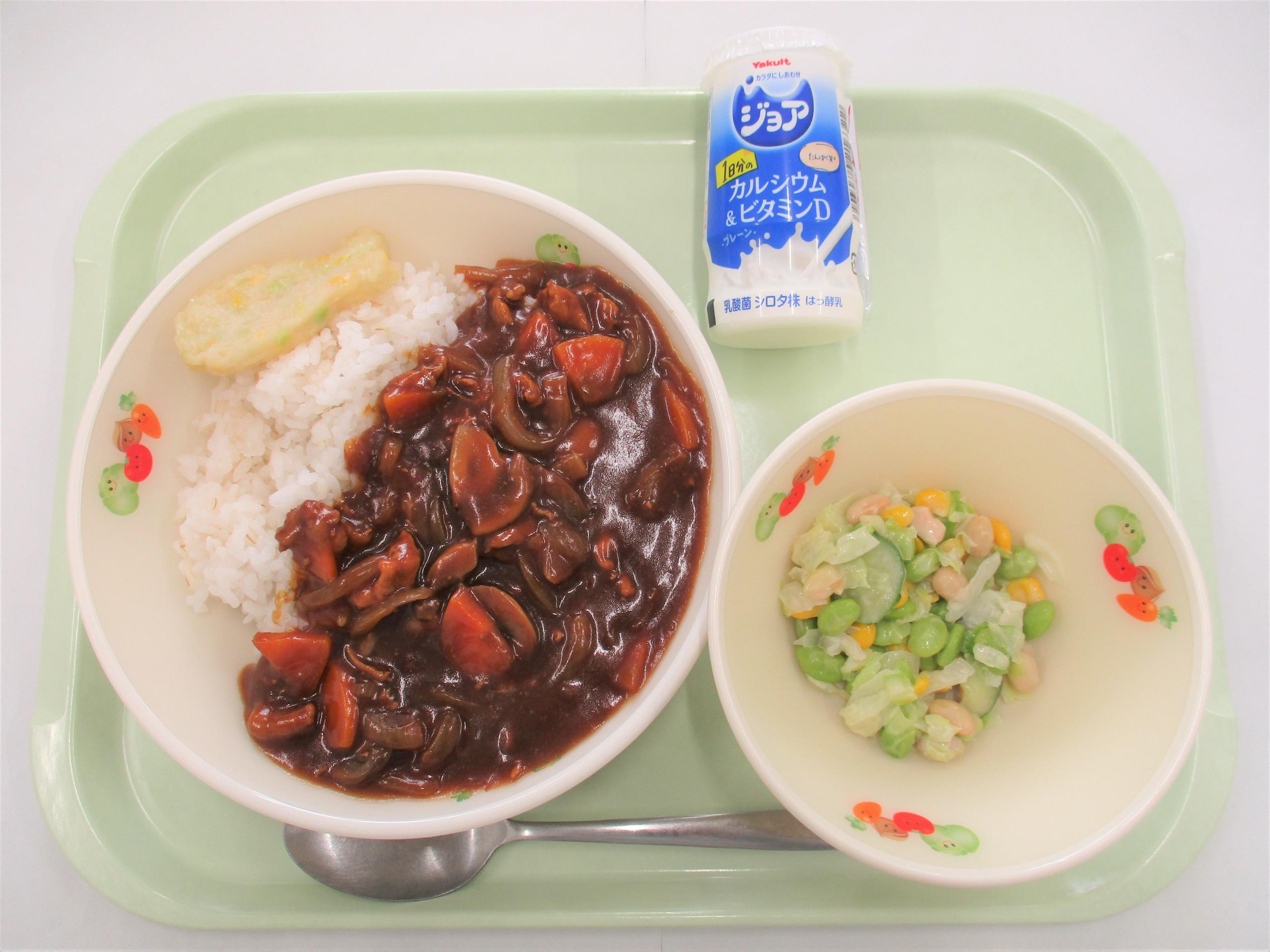 6 麦ごはん ジョア(プレーン) お魚君かまぼこ まめまめサラダ ハヤシソース |