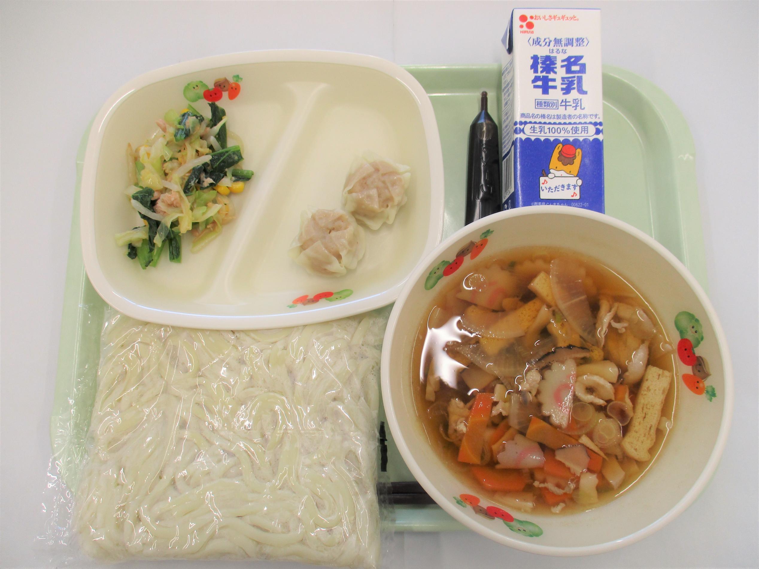 12 肉うどん 牛乳 しぶせん焼売 ミルメーク |